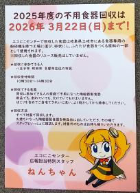 今年度の食器回収最終日は3月22日