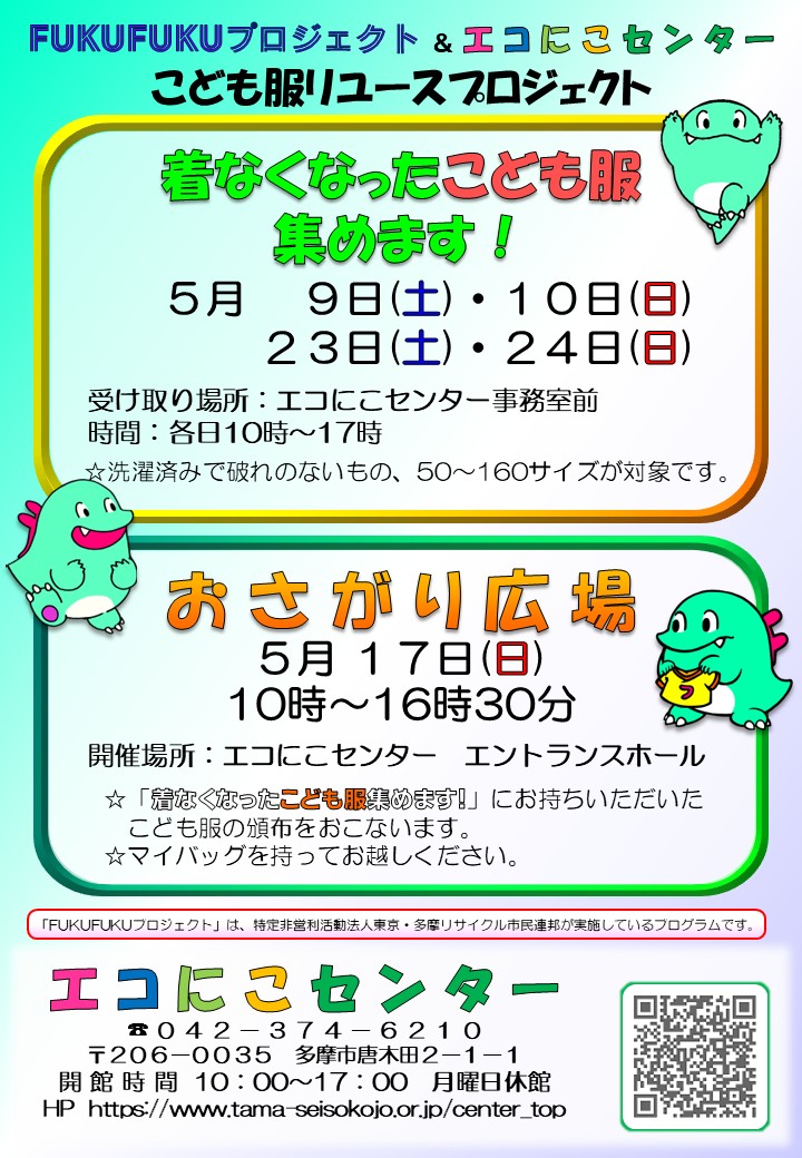 なお、この事業は、特定非営利活動法人東京・多摩リサイクル市民連邦の「FUKUFUKUプロジェクト」と共催で実施しています。