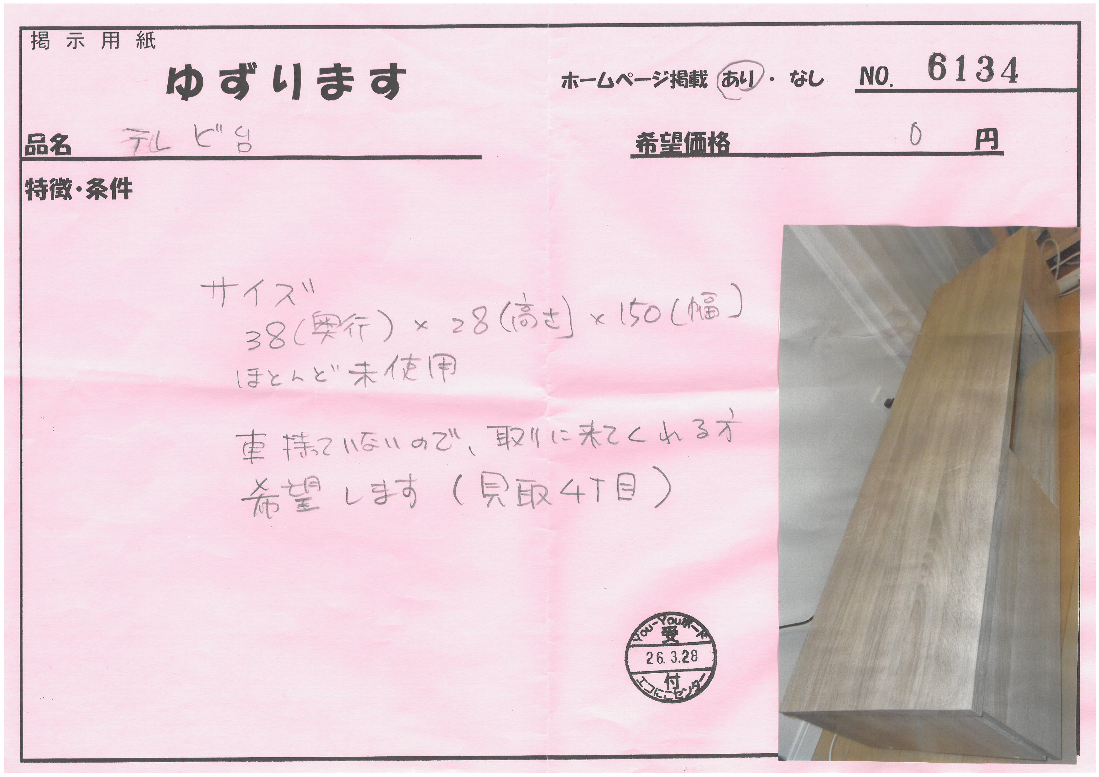 - 譲りたい方の品物は自宅で保管してください。センターで預かることはできません。