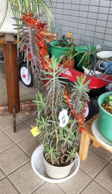 市民の方にゆずっていただいたた多肉植物に赤いモールを掛けました。